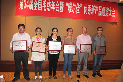 公司產(chǎn)品在第34屆全國毛紡年會(huì)暨“維爾佳”優(yōu)秀新產(chǎn)品頒獎(jiǎng)大會(huì)上獲獎(jiǎng)