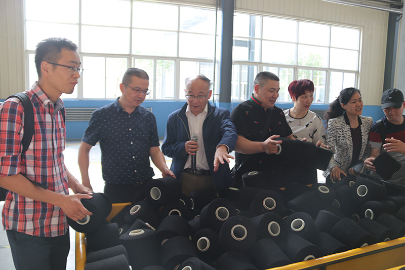 3、集團(tuán)副總經(jīng)理、總工程師鹿慶福向參觀嘉賓介紹公司優(yōu)質(zhì)色紗