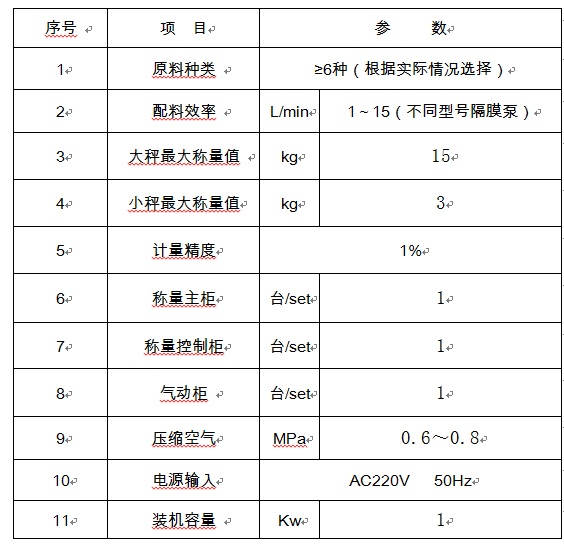 簡(jiǎn)介: 液體助劑自動(dòng)稱(chēng)量機(jī)通過(guò)計(jì)算機(jī)對(duì)電子秤閉環(huán)控制,實(shí)現(xiàn)助劑自動(dòng)精準(zhǔn)計(jì)量。PLC控制泵與閥的精密配合,保證整個(gè)稱(chēng)量過(guò)程選料快速及計(jì)量準(zhǔn)確,杜絕原料浪費(fèi)。 特點(diǎn): 1. 杜絕選料錯(cuò)誤,計(jì)量精準(zhǔn); 2. 提高助劑稱(chēng)量的速度和準(zhǔn)確度; 3. 操作簡(jiǎn)單智能化,提高效率,降低對(duì)配料工人的技能要求; 4. 改善稱(chēng)量工作環(huán)境; 5. 全不銹鋼外殼電子秤,易清洗、方便清潔; 6. 稱(chēng)料數(shù)據(jù)可記憶存儲(chǔ),為助劑消耗報(bào)表提供數(shù)據(jù)和質(zhì)量檢查的可追溯性 7. 設(shè)備整體結(jié)構(gòu)占地小,安裝簡(jiǎn)單快捷,配管安裝簡(jiǎn)潔。使檢查維護(hù)更為方便。 技術(shù)參數(shù):